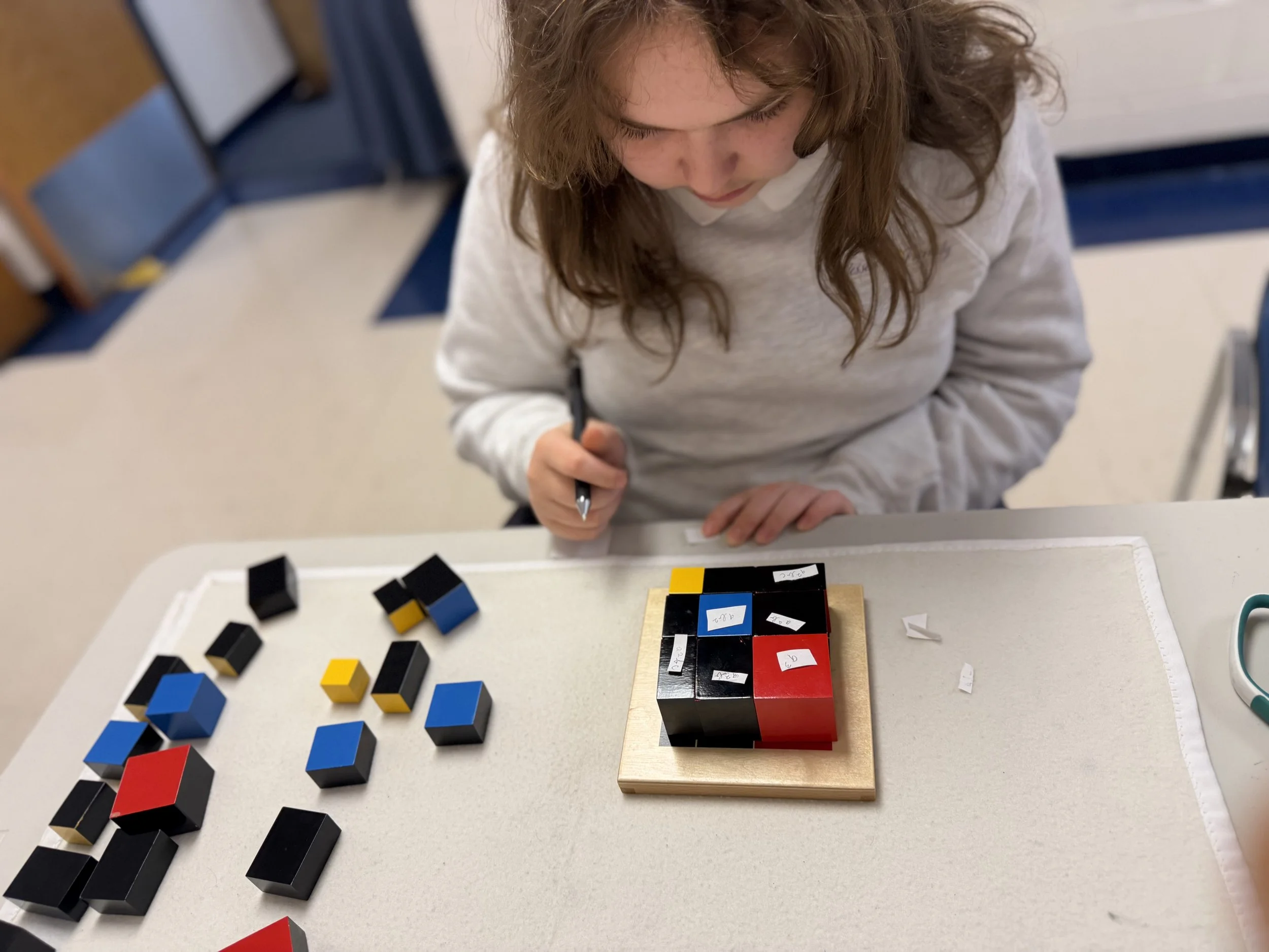 In the Erdkinder, self-expression is important both for the individual and the group. The adolescent investigates language through debate, acting, and speeches. He investigates art through drawing, painting, and sculpting. Through math, the adolescent experiments with exactness and application and has an understanding of ideas that are based in math. Language also provides the basis for character and the realization that the individual must take responsibility for the tone and words used in communication. The child of this plane studies earth and life on earth connecting with the various civilizations and the progress of humanity. In the Erdkinder, human inventions are made available in the form of machines which the adolescent can take apart to study and reassemble. Through the study of migration of people, the adolescent can begin to see how human beings have impacted the earth.